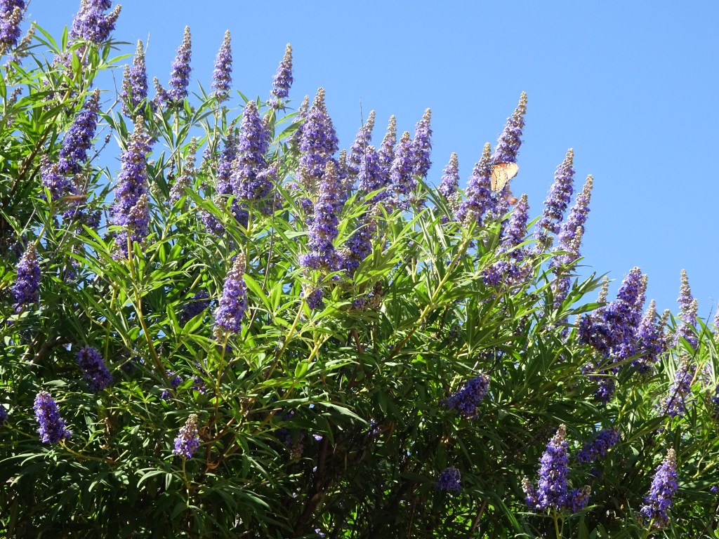 In our courtyard, the Vitex tree is crowned with purple blossoms. The bees and butterflies flit and dive above the branches in an elaborate ballet. Somehow, they avoid collision. I look forward to this display every year. It will only last for a week or so, and then the flagstones below will be covered with a carpet of purple petals.