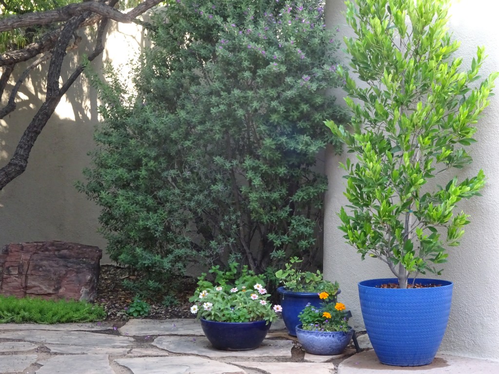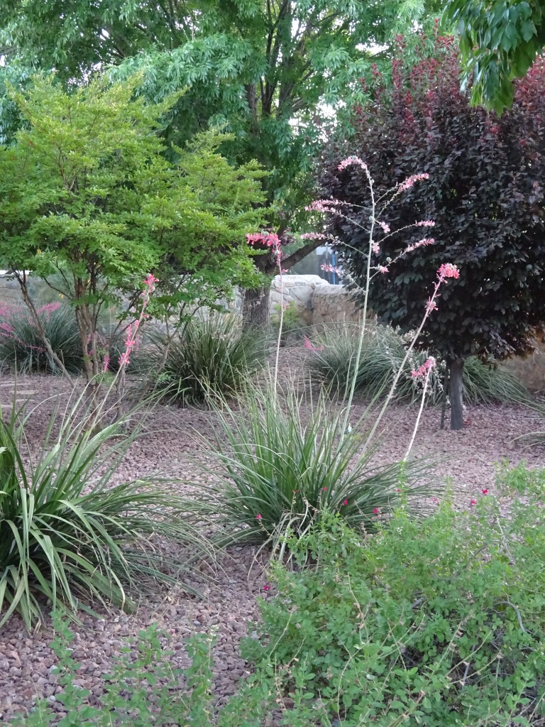 When our yard was landscaped over a decade ago, the new plants were so small that you could barely see them in the stark expanse of garden rock. Now the plants have matured to the point that the yard almost looks like a desert jungle. But there is still enough space between the plants to present a pleasing appearance.