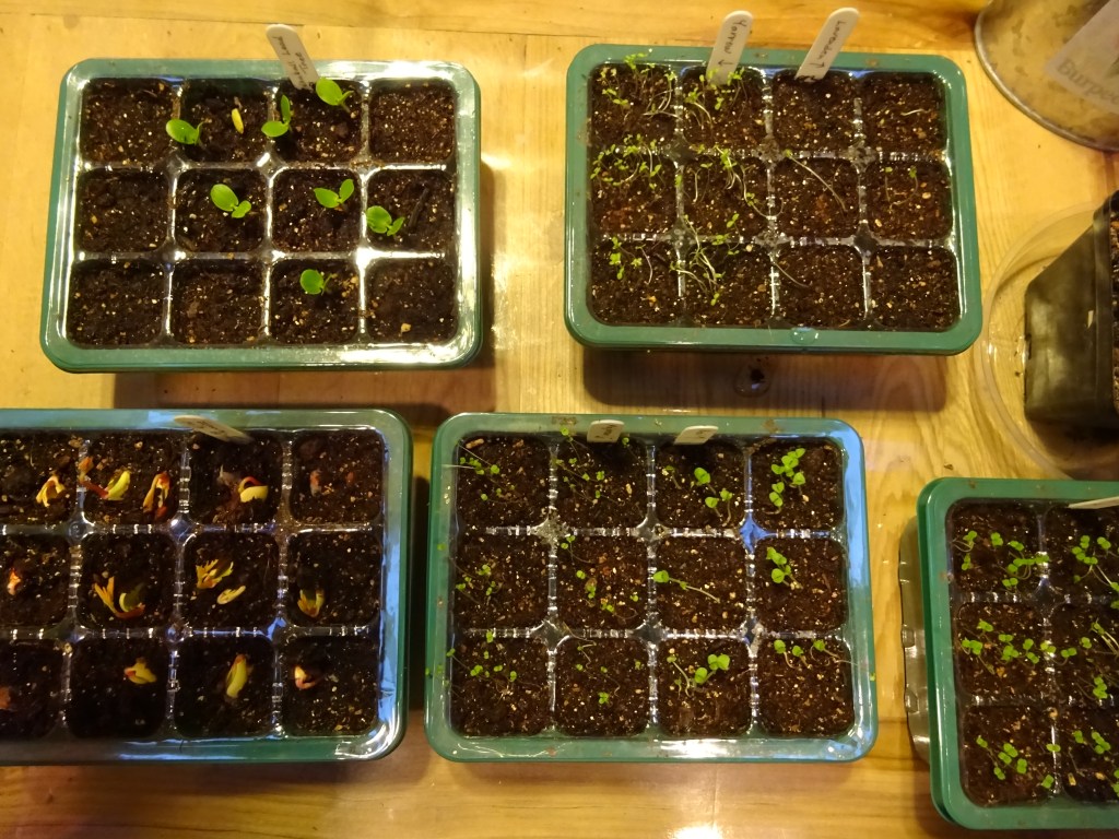 Two weeks ago, I planted some seeds in my studio and placed them on warming pads. Most of them have sprouted. Now, if I can only keep them alive until it’s warm enough to move them outside…